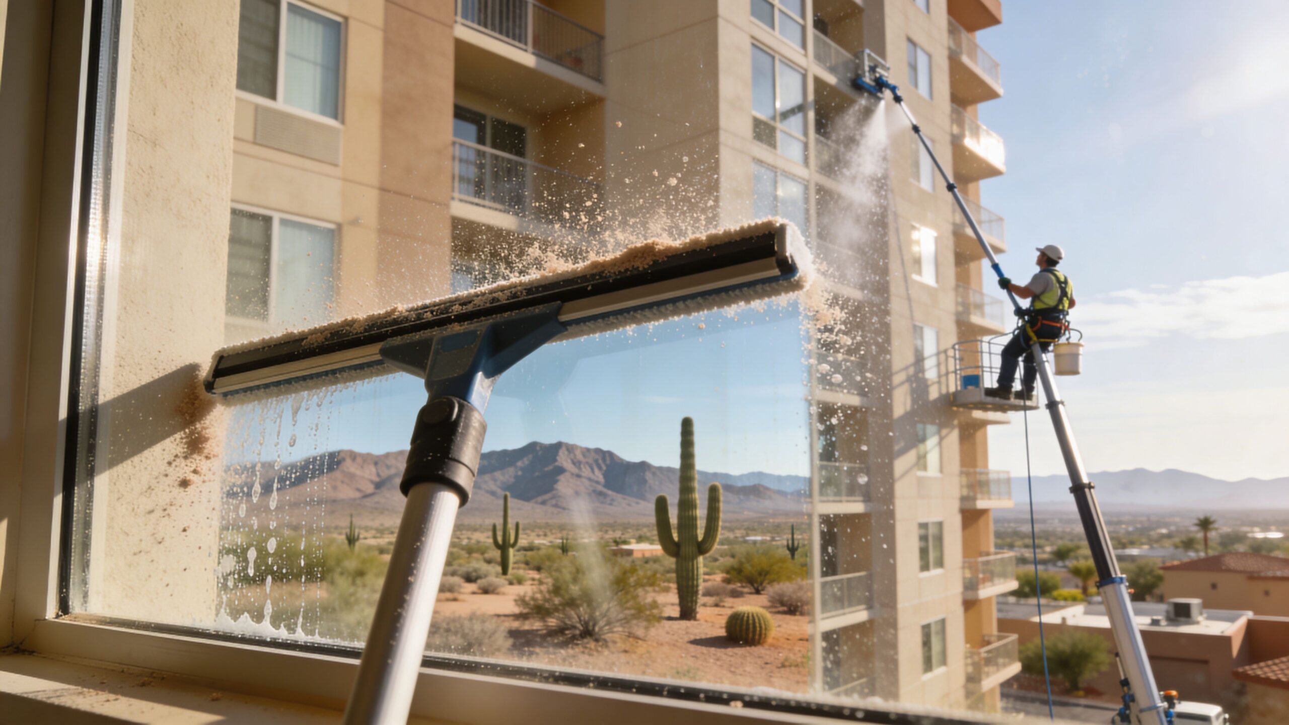The ultimate apartment window cleaning guide for Phoenix renters & managers. Learn DIY tips, pro service costs, safety rules, and how to handle AZ dust.