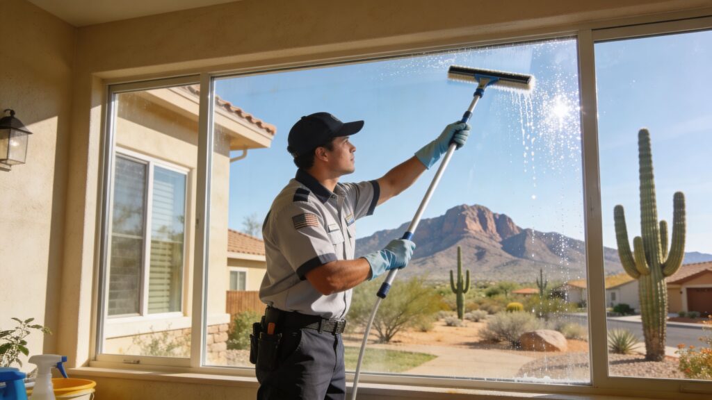 Phoenix doesn’t dirty windows the same way other places do. Here, the cleaning method has to match the climate. If it doesn’t, the windows may look good for a few hours and worse after they dry.