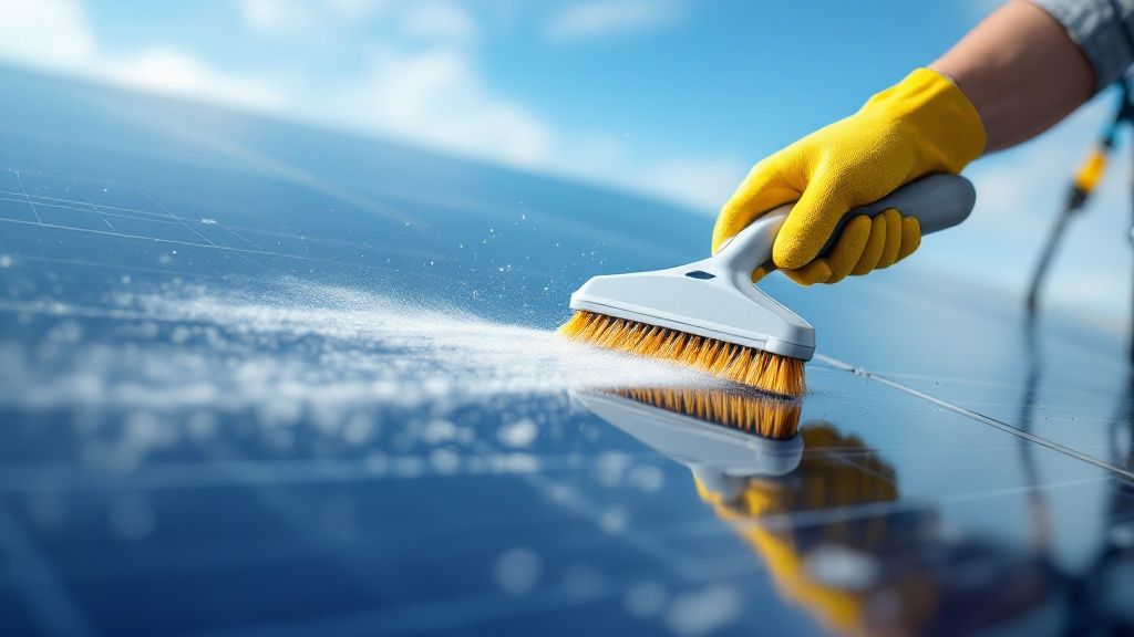 That fine layer of dust coating your solar panels? It might not look like much, but it's quietly siphoning money from your pocket every single day. Getting your solar panel cleaning done regularly isn't just about keeping up appearances. It’s a vital maintenance step that can boost your system's efficiency by anywhere from 5% to over 30%, depending on where you live.